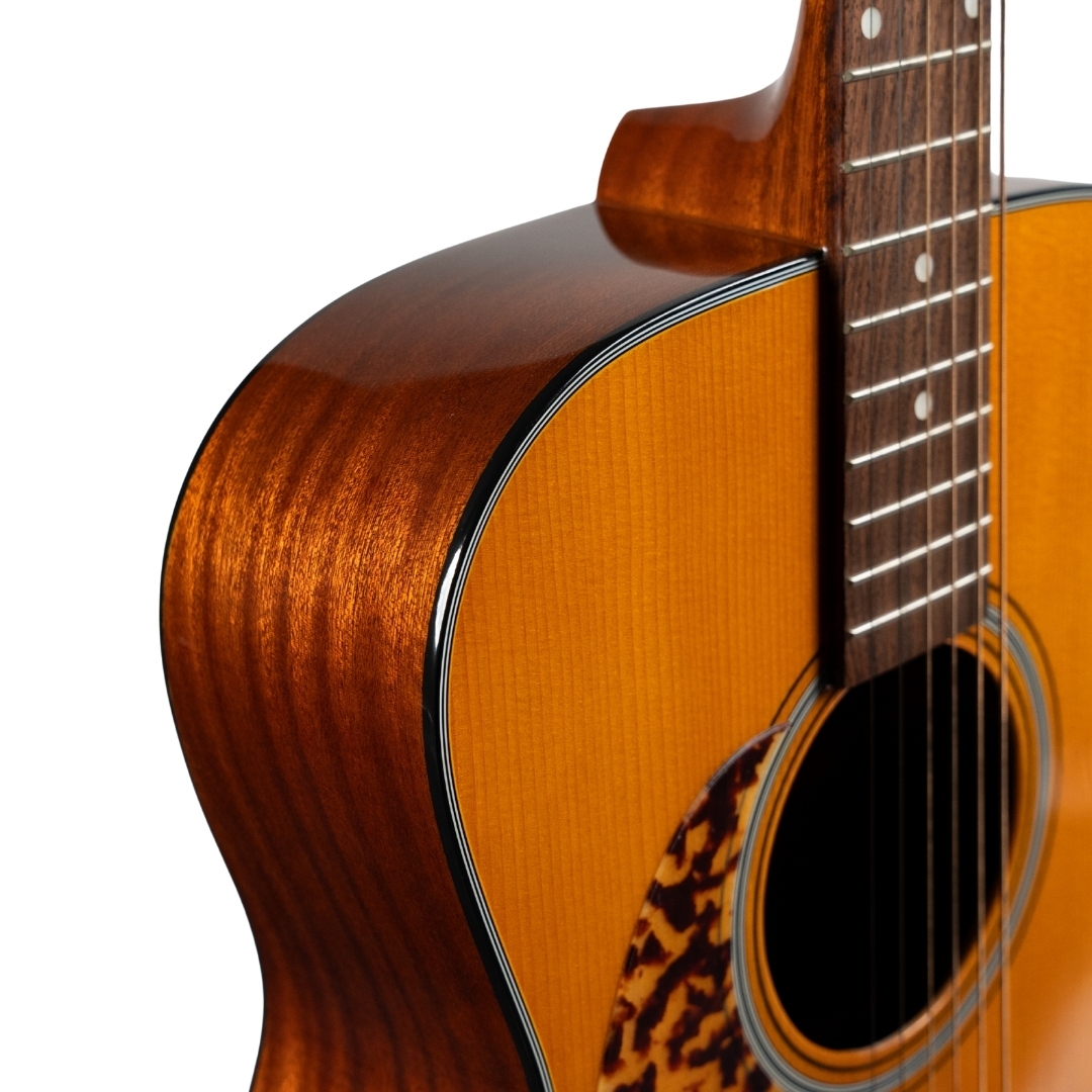| Bracing | Hand-carved scalloped bracing in the prewar-style forward shifted-X pattern |