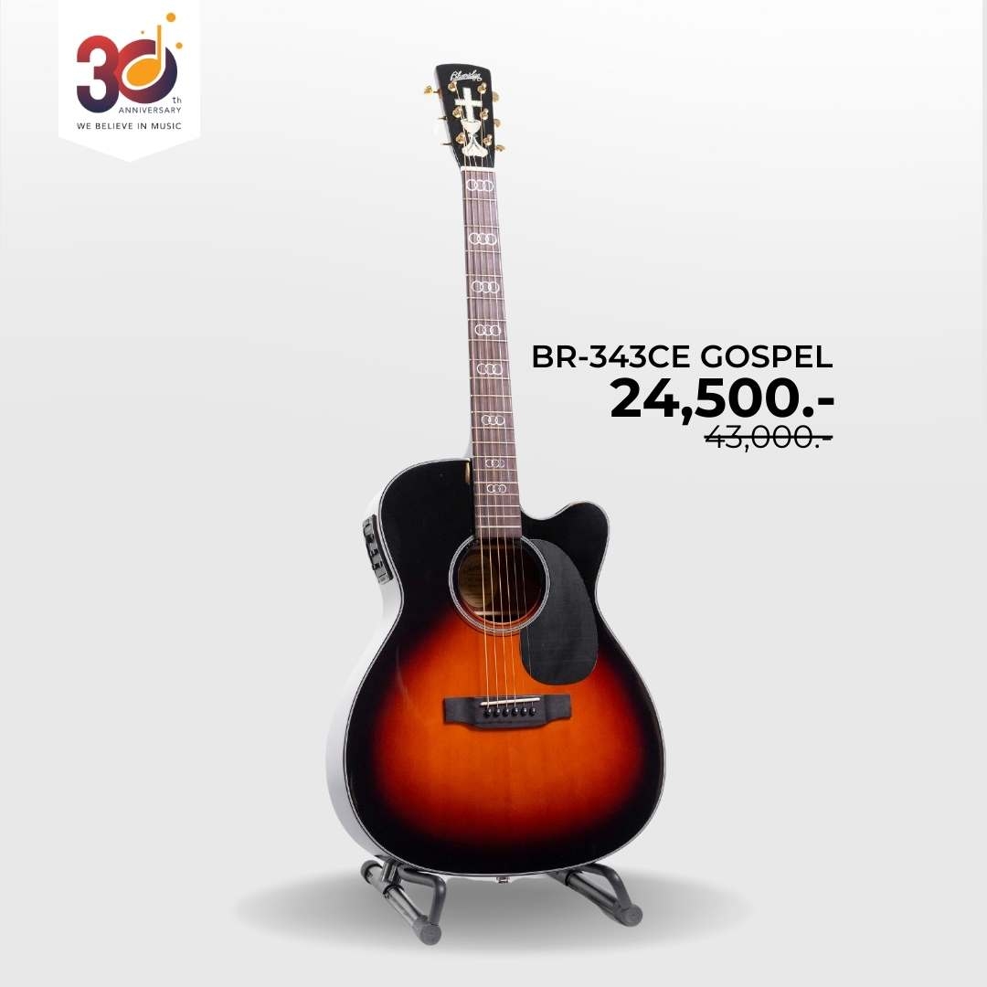 BR-343CE เลือกใช้ไม้หน้าคัดเกรดอย่าง Sitka Spruce เข้าคู่กับ Mahogany โดดเด่นในย่านเสียงกลางมากเเละตอบสนองต่อย่านเสียงนี้ได้อย่างดี อีกทั้งยังเสียงพุ่งเเละชัดมากตอบสนองต่อการเล่นทั้งเเบบ Finger Style เเละ Strumming ได้ดีเยี่ยม พร้อมทำสี Vintage Sunburst ทั้งตัว เหมาะสำหรับคนชอบความไม่ธรรมดาทั้งน้ำเสียงและหน้าตา