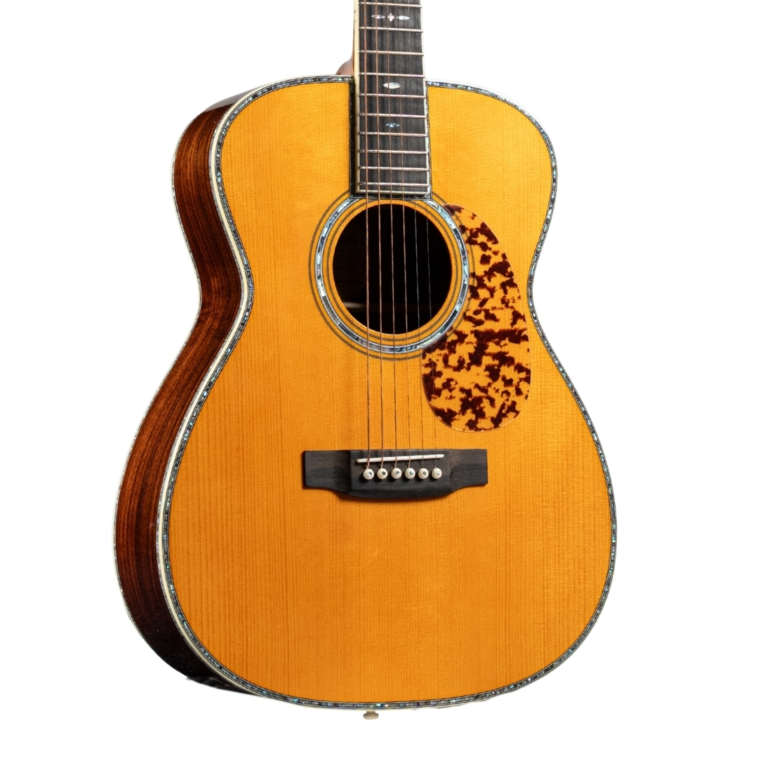 | Bracing | Hand-carved scalloped bracing in the prewar-style forward shifted-X pattern |
