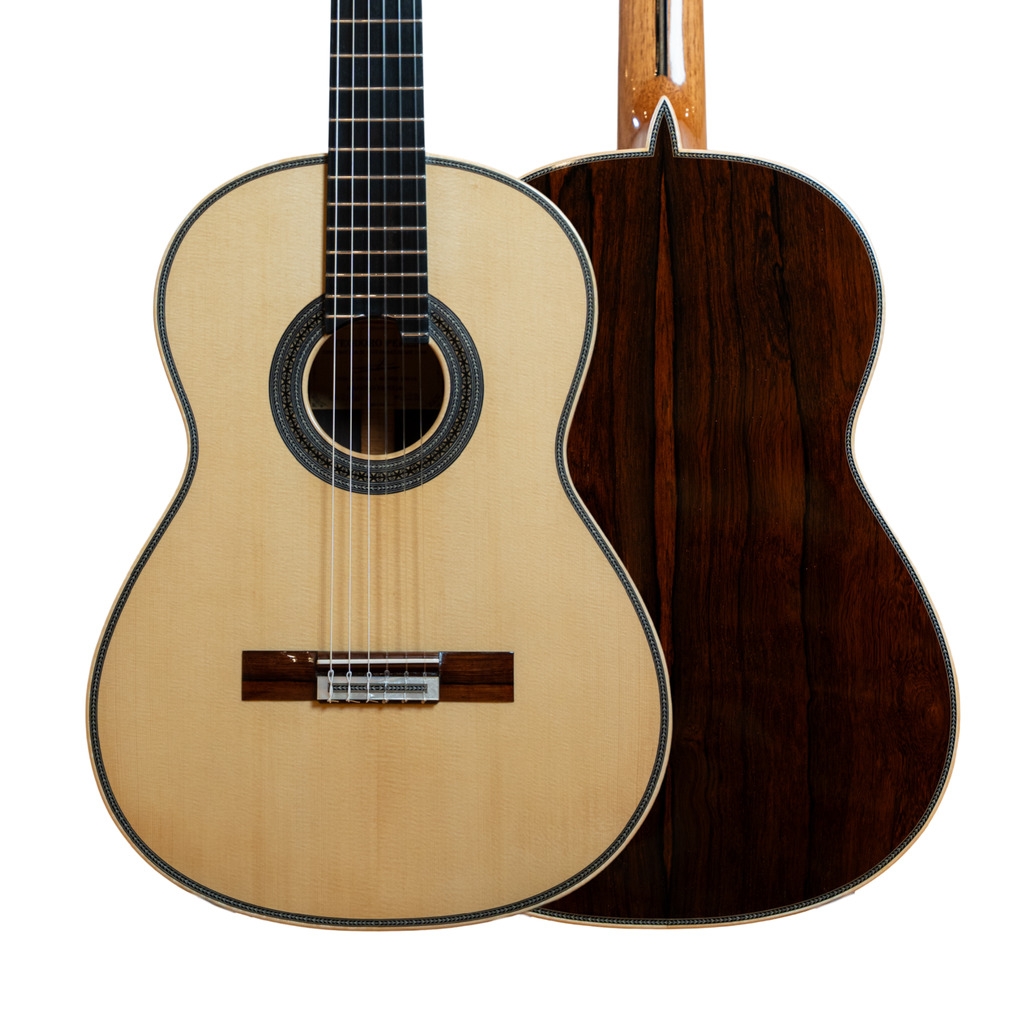 Its sound is distinctly Spanish, with a full, romantic tone and rapid execution, resulting in exceptional sound quality. The materials selected for this model are exquisitely beautiful, and it also features more elaborate marquetry work.