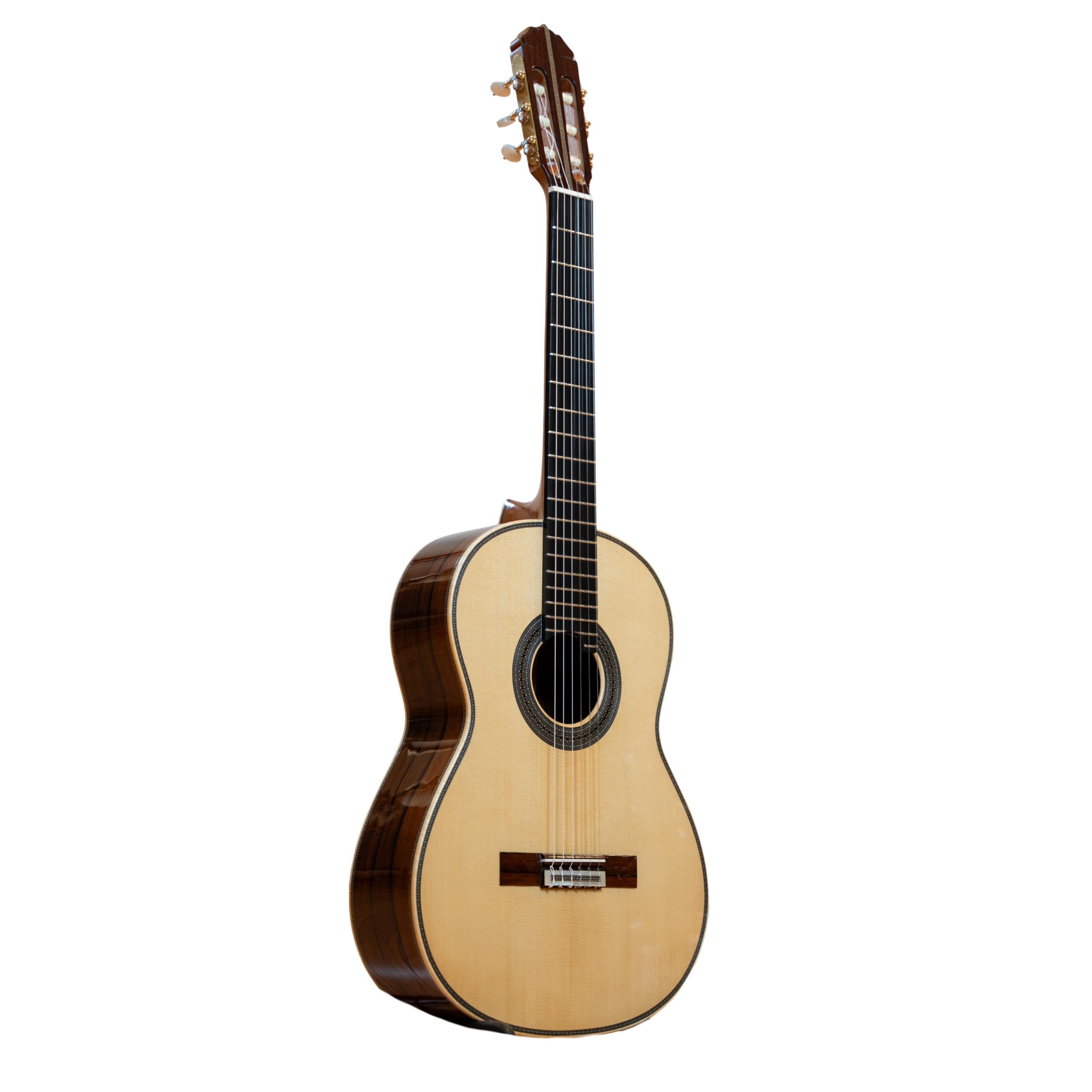 Its sound is distinctly Spanish, with a full, romantic tone and rapid execution, resulting in exceptional sound quality. The materials selected for this model are exquisitely beautiful, and it also features more elaborate marquetry work.